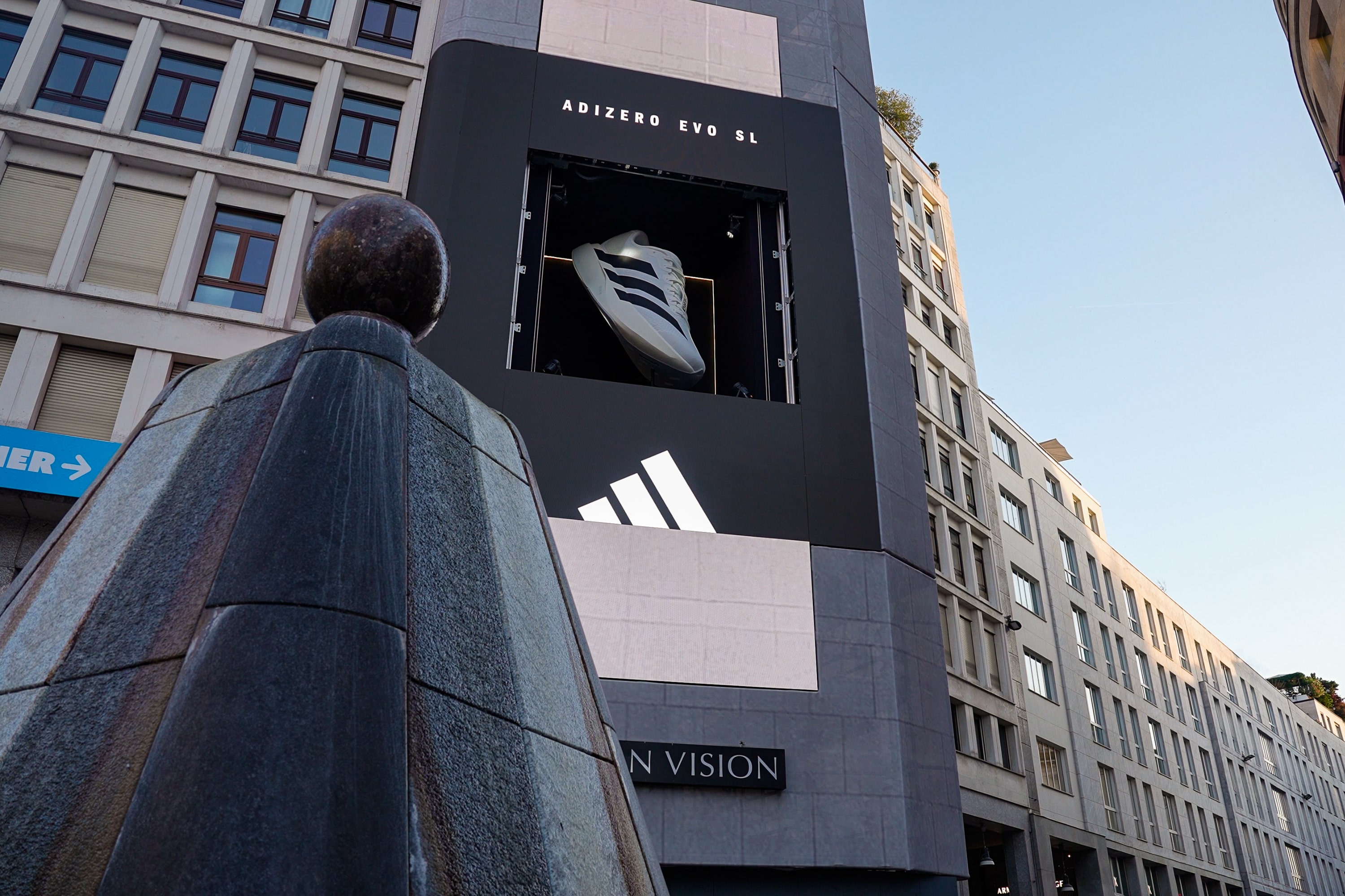 🇬🇧 For the collaboration between Adidas and Urban Vision, I designed the installation of a 3-meter-tall Adidas sneakerinside the large LED wall in Piazza San Babila, Milan. The challenge was to turn the architectural constraints of the structure into a creative opportunity: by studying the blueprints, I defined a 4 x 4 x 4-meter space that highlighted the sneaker without compromising its visual impact. After determining the optimal placement through 3D modeling and an animation in Blender, I worked closely with engineers and the site manager to finalize the structural details and necessary supports; the sneaker was then custom-built, and the construction team assembled the dedicated space, completing the installation. The result is a project that merges digital advertising with a physical installation, transforming the sneaker into a sculptural piece that blends the virtual with the real, captures attention, and reinforces Adidas’ brand identity.