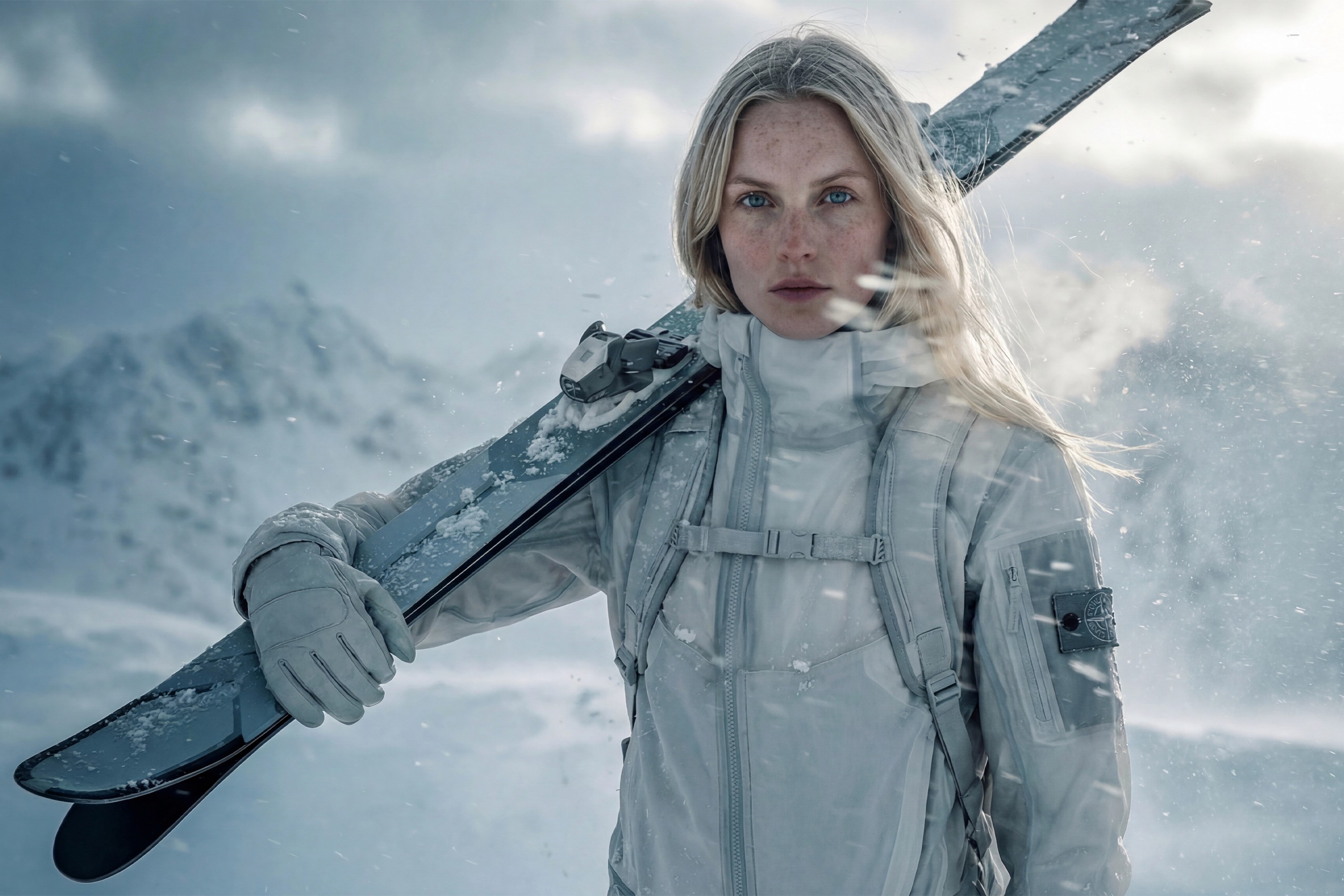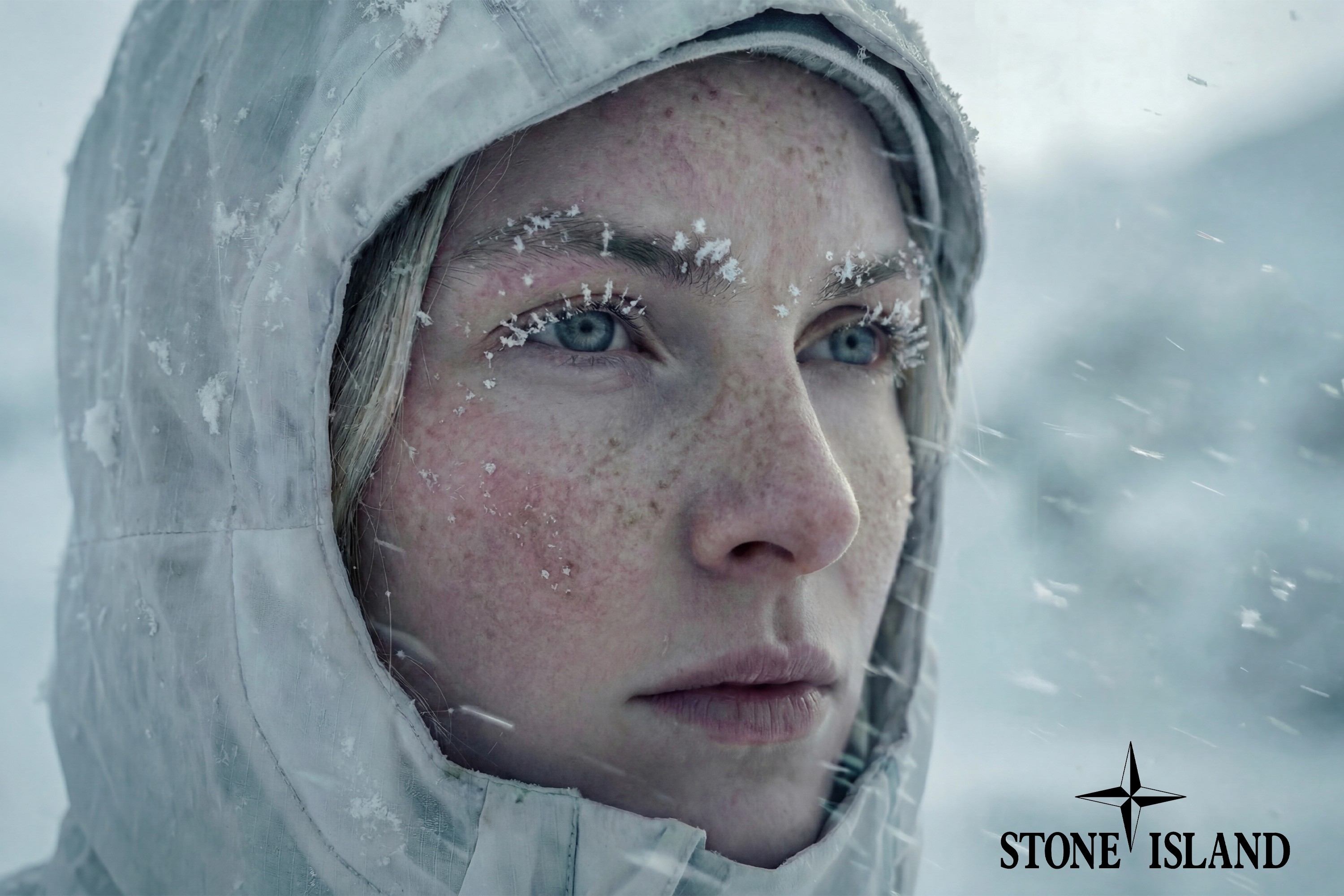 🇬🇧 We operate where survival meets system. Where air hardens and silence holds weight. Stone Island presents research shaped at the edge, fabric tested against frost, construction pushed beyond comfort. This is not camouflage. It’s a dialogue with altitude. Built for moments beyond comfort. White reacts to altitude. Construction moves with the cold. The badge disappears under frost. All work is calibration, between body heat and mountain indifference. STONE ISLAND - Conceptual Campaign